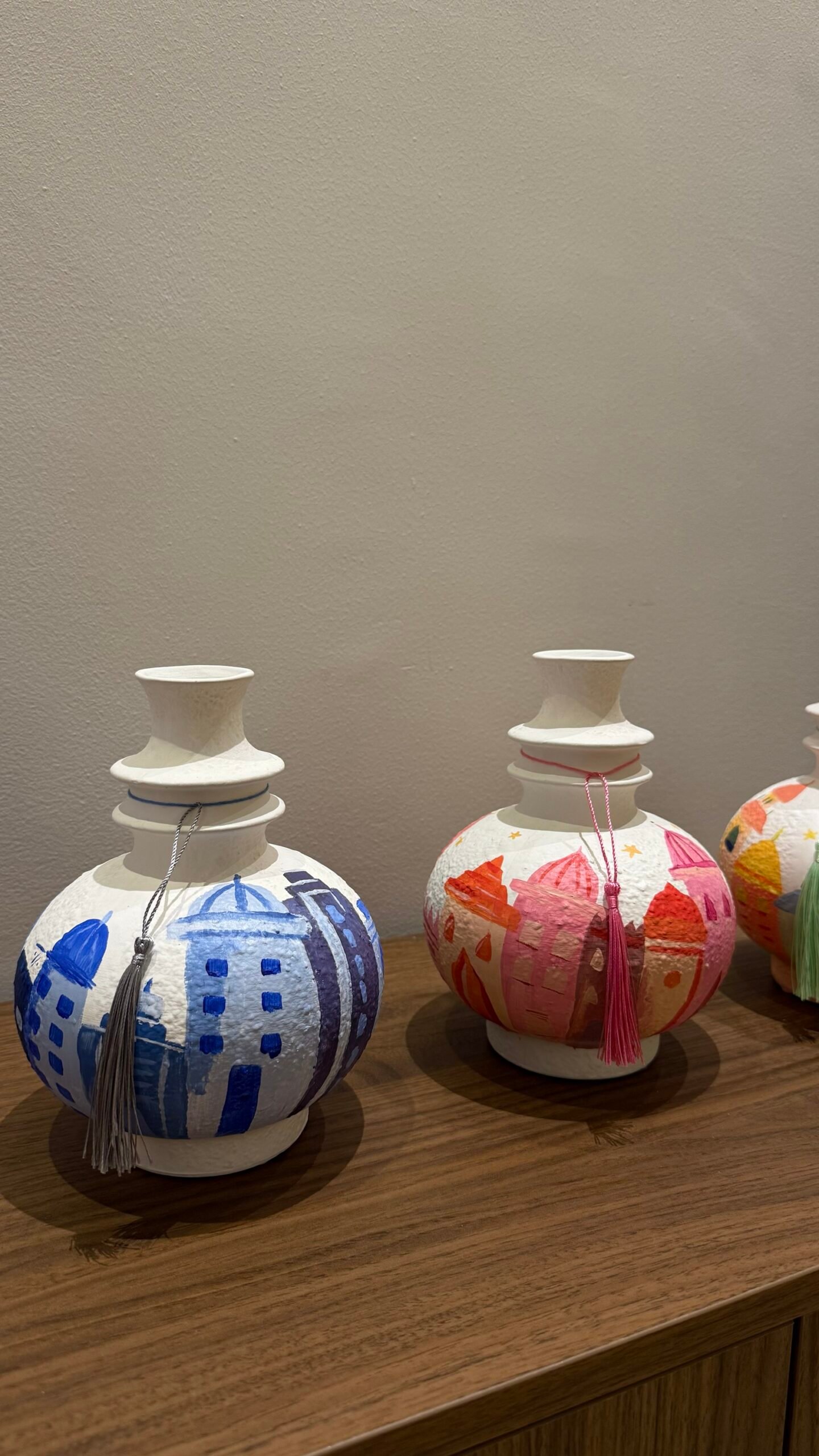 Hand-painted ceramic vase inspired by the quiet rhythm of Ramadan nights, perfect for gifting.